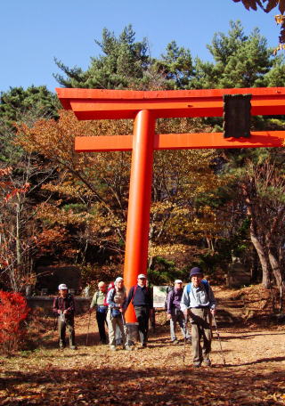 | 裏参道から登り表参道に下る。上田市民の山で多数の人が登るので、良く整備され歩きやすい。広い山頂から今回取りやめた子檀嶺山と独鈷山、明日登る夫神岳が見える。 | |||
