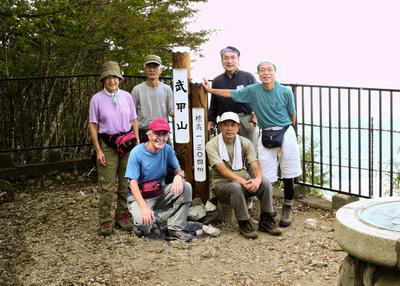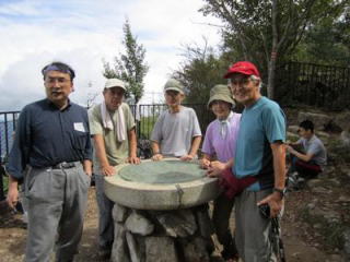 頂上で適当に陣取り少し早い昼食を取る。食べ始めたところに、笹沢さんが到着する。かなり早いペースで歩いてきたようだ。これで全員集合となる。