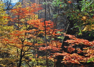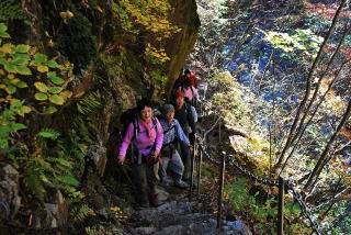 | 快晴の下、次々と現れる優美な滝、繊細な滝、豪快な滝等を鑑賞しながら沢沿いに登る。平日なのに相当な人出、休日ならまともに歩けなくなるように思える。 | |||
