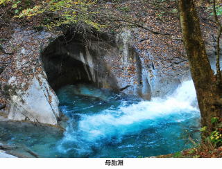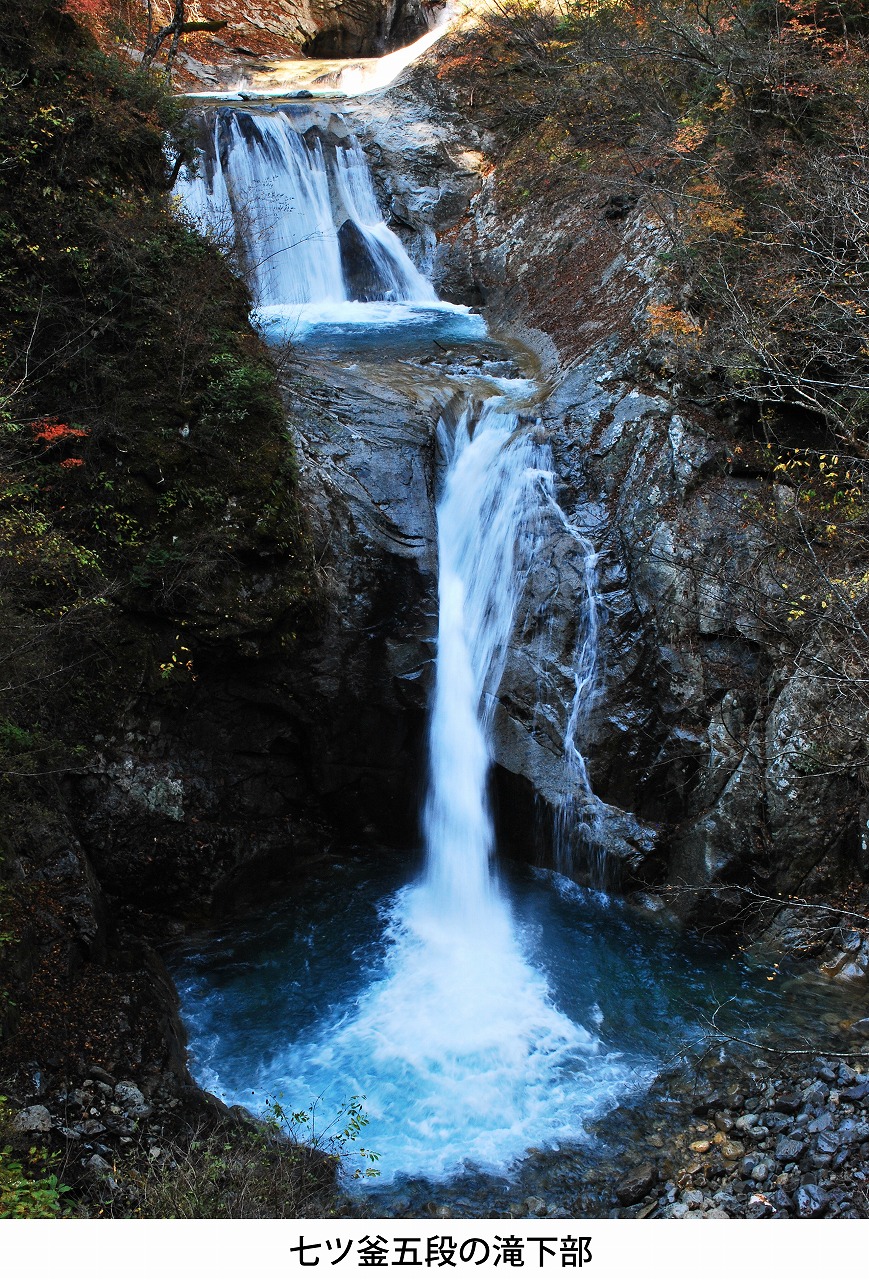 11.16、お目当ての七つ釜五段の滝に到着。自然が造る美の造形にただただ感動。