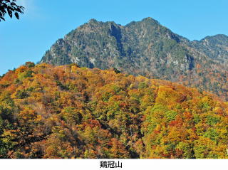 11.37西沢渓谷の終点に到着。見上げると白い岩肌の山が目に入る。あれが甲武信岳かと思ったが、後の案内板から鶏冠(とさか)山と判明。甲武信岳はその陰に位置するらしい。この後、旧森林軌道であった山側の道に入る。