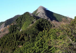 イノシシとも別れ、上り下りを何回か繰り返しながら、急坂の痩せ尾根を登る。途中には安全ロープや鎖場のところもあり、結構危険である。