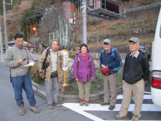 お弁当を広げていると、例の団体さんがもう降りてきた。二、三言葉を交わす。我々は強石から来たこと、彼らの情報によれば、当初予定の落合方面は道路が封鎖されているとのことだった。