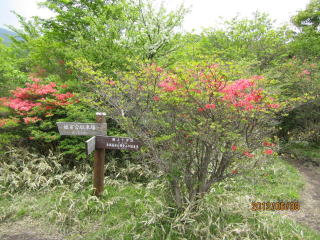 山から下りてくる人たちと交わす会話も楽しい。「ツツジの咲きも今日は満開の初日だね」