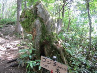 7.55力水(最後の水場)、9.08ゴジラのような木を経てお昼前に2300m付近で昼食。