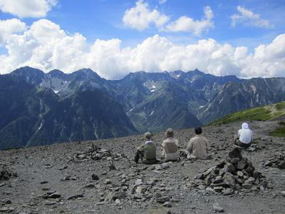菅笠をかぶった陽気なおじさんの二人ずれとヒュッテでのビールを話題にしながら抜きつ抜かれつ進む。夏休みのせいか学生や若者が多い。単独行の女性も数人見かけた。