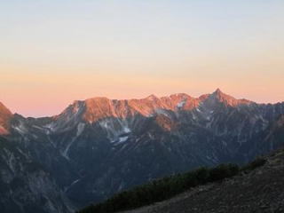 山頂からの眺めは圧巻であった。目前に広がる大パノラマ、槍ヶ岳、北穂、涸沢、奥穂、前穂、明神と、久家さんに貰った写真そのままが圧倒的な迫力で眼前に迫ってくる。