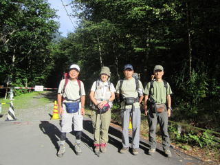 6:45ヒュッテ玄関前に集合し、記念撮影をして、いよいよ3日目の始まりである。