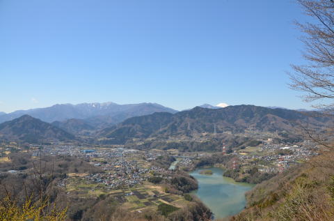10:40、見晴台に到着。眼下に津久井湖、遠方に白一色の富士山、残雪の蛭ヶ岳を眺めることができる、本日最高の絶景ポイントだ。何人かの先客も休んでいた。