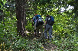 | 梅雨も明け、猛暑が続く毎日でしたが、風もあり湿度も低く、爽やかな森林浴を楽しめる一日だった。久家さんの復帰初回山行となりましたが、コースは起伏のあるタフなコースで、登りは我々だけで、行き交う人も少ない静かなコースだった。 | |||