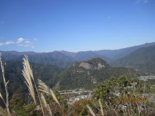 菊花山から大月駅への下山路は滑りそうな岩盤に用心しながら下りてきた。今回の山行はまわりに見える山々を眺めながら秋の陽射しをいっぱいに浴びた心地よい山行となった。このコースは夏、雪の季節には不適。春、秋には絶好と思う。今回は紅葉には少し早かった。