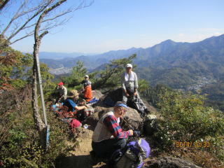 | 北方に扇山、百蔵山、岩殿山、雁ヶ腹摺山、滝子山等を、南方に富士山、鹿留山、九鬼山、御正体山、今倉山等の道志の連山、倉岳山等の中央線沿線の連山を展望でき、秋山の良さを味わった。 | |||