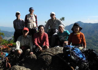 最初の山の神楽山は三等三角点があるがまわりが木々でおおわれていて展望は全くなかった。次の御前山は岩の絶壁の上にあり、富士山、鹿留山、杓子山、九鬼山、東には中央沿線沿いの山々が見え展望が素晴らしかった。ここで昼食としたが山頂はさほど広くなく、我々の後に着いた5人のパーティは場所を替えて食事としたようだ。