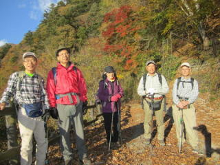 今回の山行は、最初の登りが都民の森(標高950m)から砥山(1302m)までの標高差が350m、下りの小河内峠(1050m)から奥多摩湖(530m)までの標高差が520mと、足への負担が比較的少ないコースであると感じました。また、晩秋の天候に恵まれた快適な山行でしたが、行き交う人が全くなかったことも珍しいことでした。