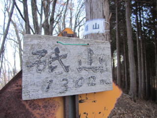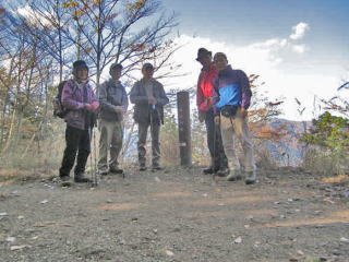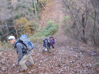 9:30出発、久家さんからのメールに従い、木材工芸センターの先の炭焼小屋付近から右折して砥山へ向かう。天候は快晴で風もそれほどでなく、積もった枯葉を踏みながらの快適な山行である。