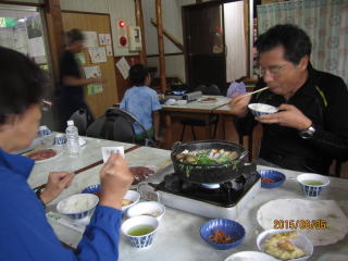 宿泊手続きと明日の昼食を注文して、部屋に案内された。2階の個室で3人は余裕。掃除も行き届いて綺麗だ。(宿泊代9,000円+翌日の昼食おにぎり300円、またはパン800円)