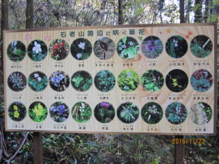 コース:JR相模湖駅着8:11−−駅前バス停8:35=(バス)=石老山入口8:50−−顕鏡寺9:20〜9:35−−融合平見晴台10:23〜10:28−−石老山山頂(702m)11:00〜11:05−−大明神山11:45−−大明神展望台(昼食)11:55〜12:30−−相模湖休養村キャンプ場13:00−−プレジャーフォレスト13:30〜16:18=(バス)=JR相模湖駅16:30