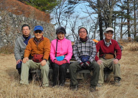 | 参加者5人と忘年山行にしては寂しかったが、長尾平では日差しがあって寒くなく、今年の回想や来年の予定などを歓談した。 |