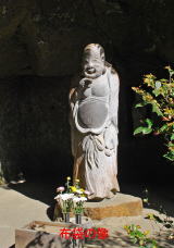 次の浄智寺は、寺の周りは見上げる程の断崖で驚いたが、鎌倉の特徴的な地形だ。断崖の中に小さな洞がいくつも掘ってあった。また、鎌倉七福神の布袋尊を祀っている寺でもあり、布袋尊のおなかをなでてご利益を被りたいと優しくなでた。