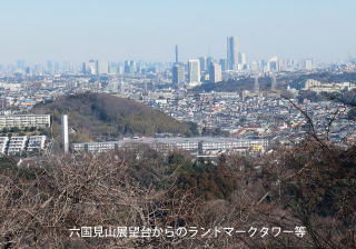 間もなく展望の良いピークに到着、富士山や相模湾、ランドマークタワー、伊豆半島などが一望できる眺望の良い場所である。リーダー(久家さん)の予定ではここで軽食を取る予定であったが、4名ほどの高齢の男性が先客として陣取っていて大きな音で演歌を流しているため写真撮影後早々に移動する。
