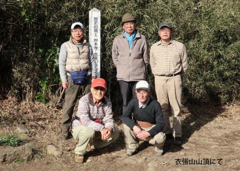 ほどなく見晴らしの良い展望台(浅間山)に到達。相模湾、伊豆半島、大島が一望できる場所だ。ここから10分ほどで衣張山山頂に到達する(13:30)。ここで遅めの昼食を取る。