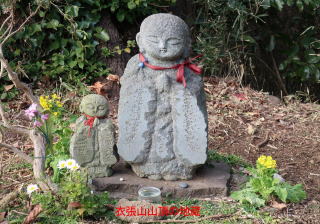 民家の続く路地の細道を左折、見落としそうな道だ。「巡礼古道」という表示あり。道すがら「金剛窟地蔵尊」に出会う。道沿いに「庚申塔」と書かれた石板が多く見かけられた。「巡礼古道」とは坂東観音33ヶ所の1番札所の杉本寺から2番札所の岩殿寺に向かう巡礼道で、庚申塔は道教の庚申信仰(年6回の庚申の日に眠らずに過ごす業)を3年続けた記念に建てる塔らしい。「金剛窟地蔵尊」の由来は不明。