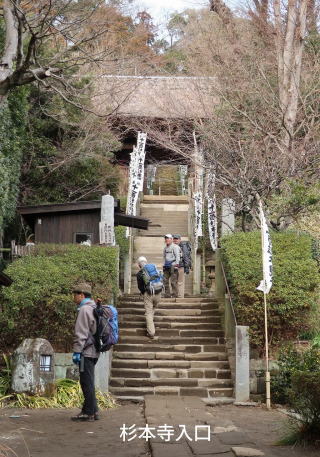 14:07出発。山道から住宅街に入り「杉本寺」に到着(入場料200円)。鎌倉最古の寺で8世紀に奈良の大仏造営に貢献した行基上人が開いたお寺で坂東33観音札所の1番霊場である。茅葺きの本堂、苔むした石段、仁王像のある山門などが有名で本堂の御本尊は十一面観音である(靴を脱いで上がらなかったせいかよく見えなかった)。