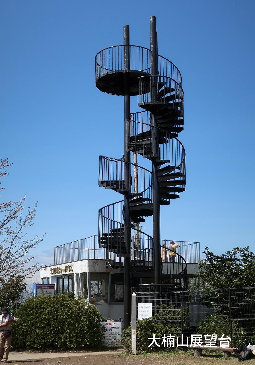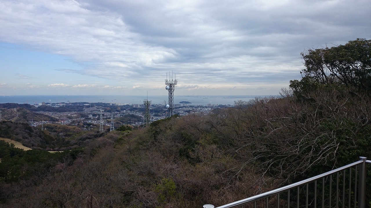 大楠山は三浦半島の最高峰であり、頂上には大きな展望台があり、見晴らしが良い。南に大島、西には伊豆半島、江の島、鎌倉、北には横浜方面、東は横須賀とその先には房総半島が見渡せる。暫く展望を楽しんだ後、昼食をとる。