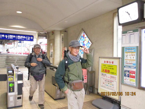 集合時間になっても神武寺駅改札口には門馬・佐々木両名がいない。二人は同じコースだから多分一緒だろうと気楽に待つ。逆にお孫さんの風邪ひき面倒で前日には一旦不参加宣言した鈴木さんがお孫さんの回復で参加できたのは良かった。