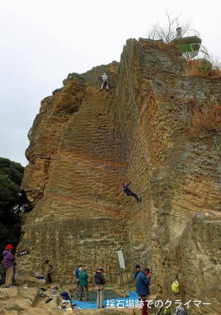 立春も過ぎ前日は気温が17℃まで上がる春模様、しかし当日は寒さが戻り、予報に反して一日どんよりとして寒かった。 鷹取山への途中には巨大な岩や奇岩が多く、ここが湘南妙義と言われるのがよくわかった。圧巻は頂上付近の岩切場跡を活用して行うロッククライミングだ。垂直に切り立つ高さ20mもあろうと思われる岩壁がいくつかあり、中高齢者と思しきクライマーが女性も含め楽しんでいる。ここがロッククライミングのメッカであるといわれるのも納得できた。