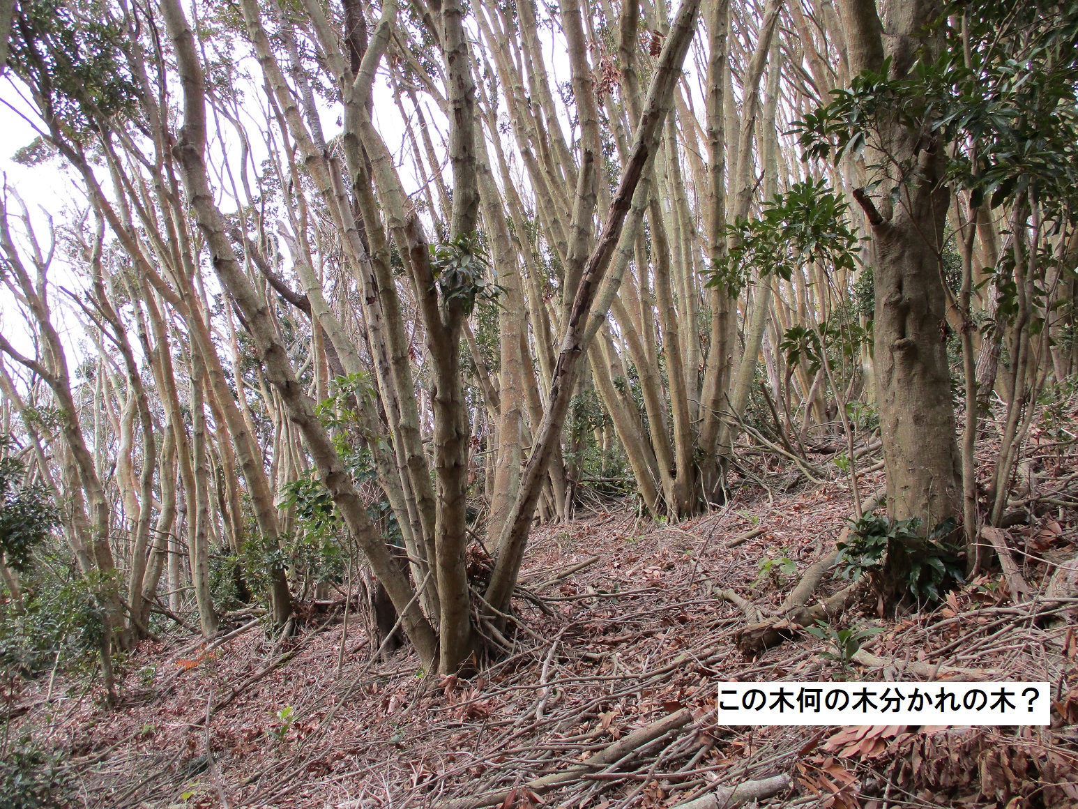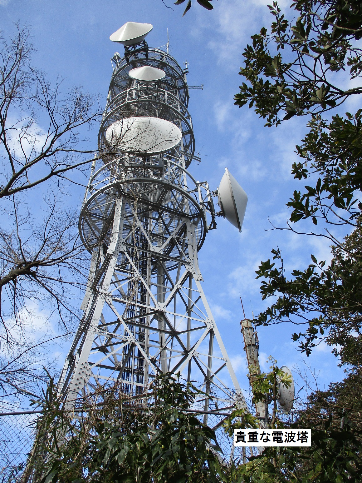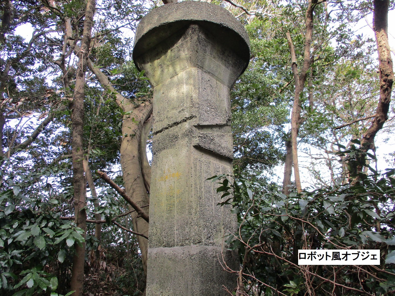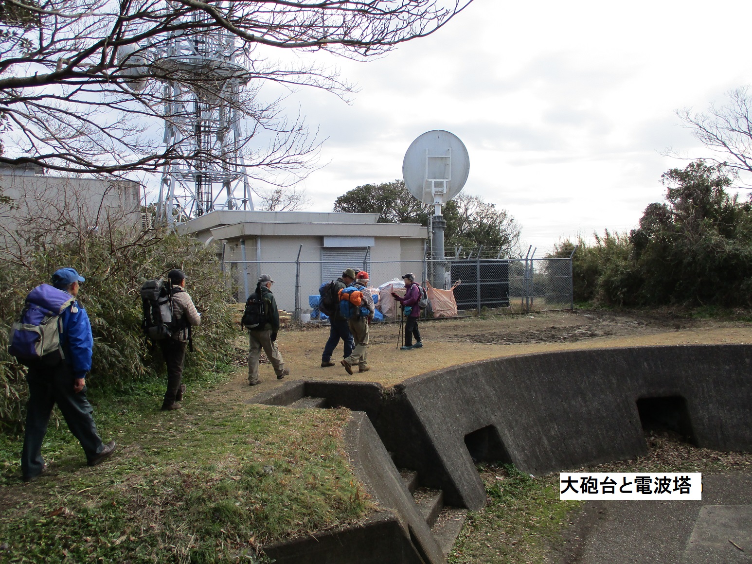 次の砲台山を目指す。ネットで検索すると元の名は大塚山だが海軍が砲台を造ったことから砲台山と呼ばれるようになった。砲台の8個の四角い穴は弾薬の格納庫と思われるとあり、かなり大きな砲台跡だった。金網に囲まれた建物は海上保安庁武山受信所だそうだ。ぐるりと見渡し写真を収めた後に三浦富士に向かった。樹林の中を歩くが初めて見る樹々だった。道がかなりぬかっていてストックが役立った。昨年の関東を直撃した超大型台風で、なぎ倒された倒木が至る所に無残な姿で放置されていた。人間の力ではどうにもできない自然の破壊力を思い知った。