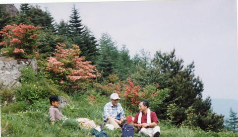 十二ヶ岳の岩場で苦労した人がいた。大石峠は山つつじが満開。