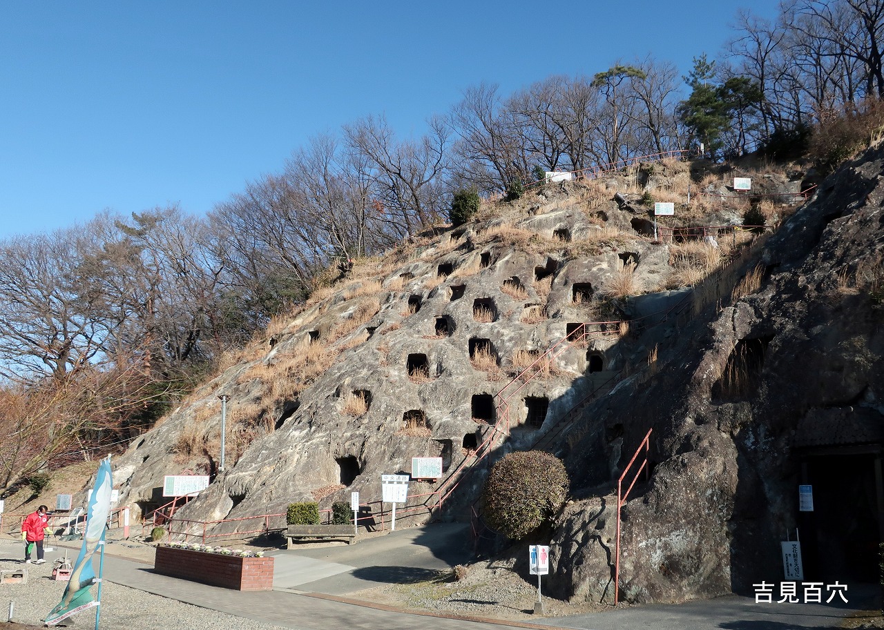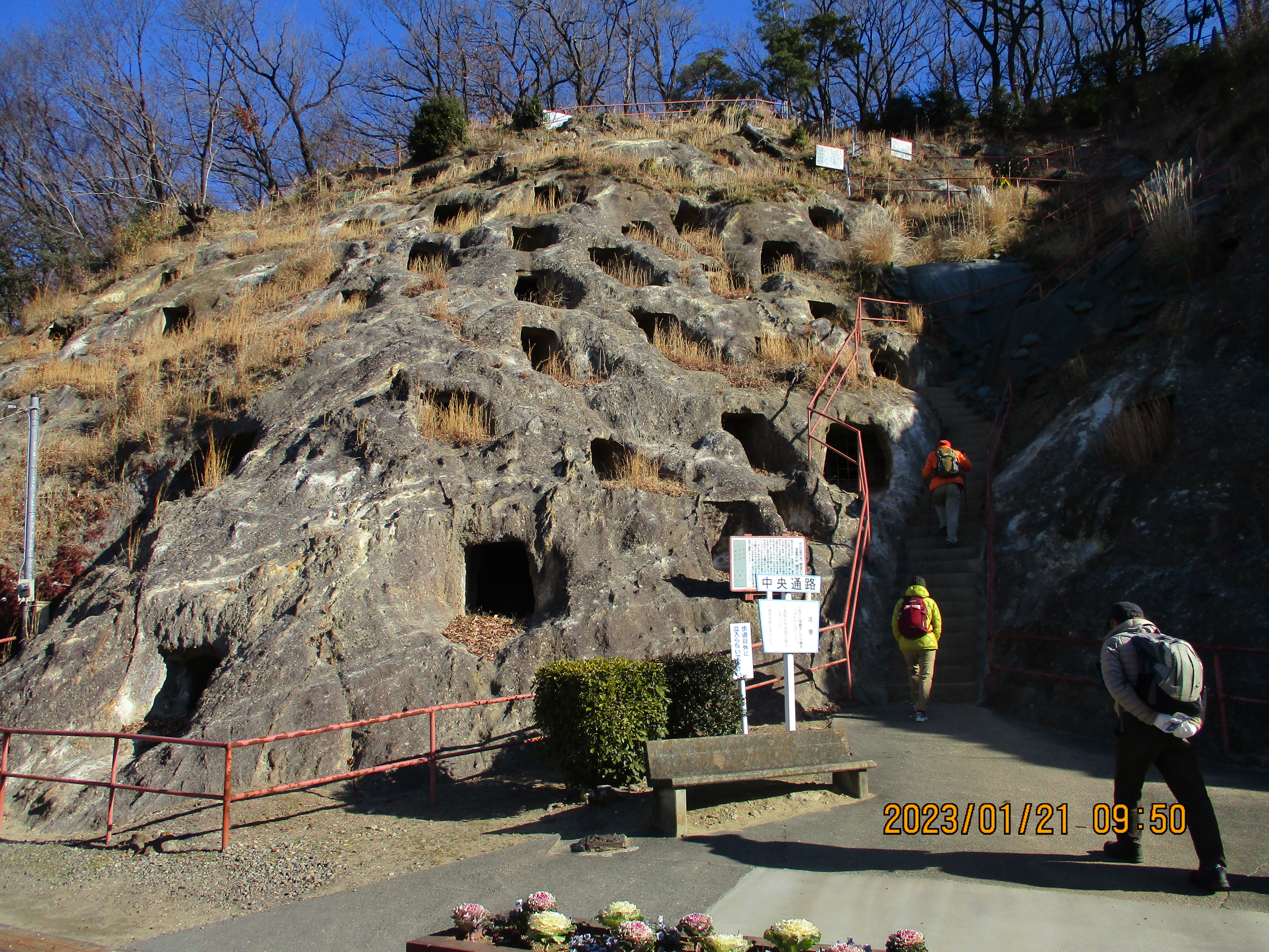 | ポンポン山への道すがら岩室観音堂、吉見百穴、吉見観音等の遺跡旧跡に寄ったが、強い北風の影響か土曜日にしては観光客がかなり少なく、我々のペースで歩くことができた。 | |||