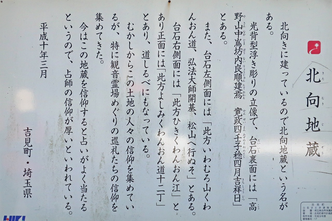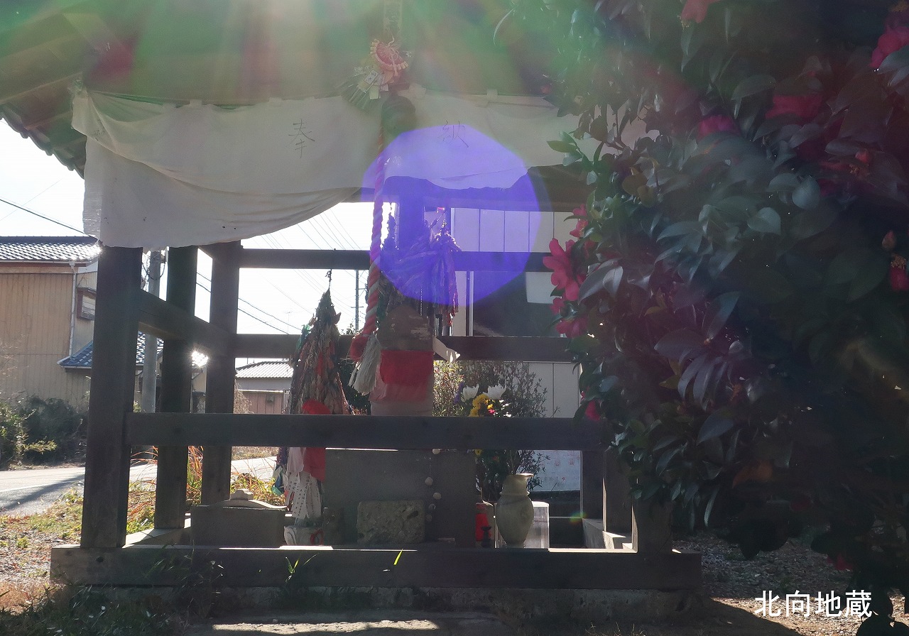 10:50北向き地蔵到着。八坂神社前の一角に位置し、岩室観音、吉見観音の道標にもなってきたという。寛政4年(1792年)銘の地蔵尊。