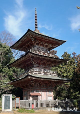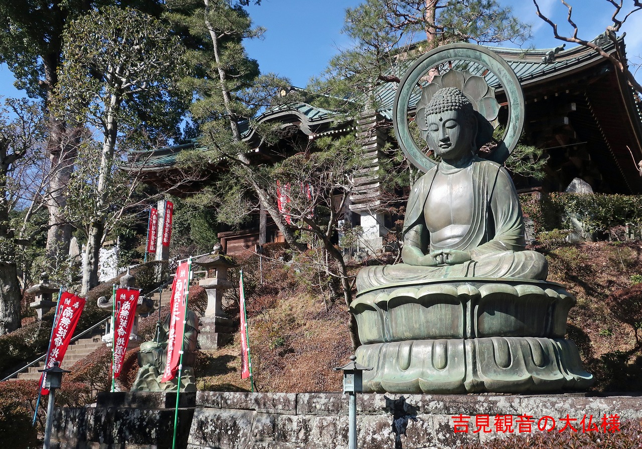 11:20 吉見観音(岩殿山安楽寺)到着。今回のコースでは最も大きな寺院で創建は806年、坂東33か所の11番礼所。本堂の隣にある三重塔も素晴らしい。境内にある吉見大仏といい、ここでかくも歴史的遺産を見れるとは感激だ。