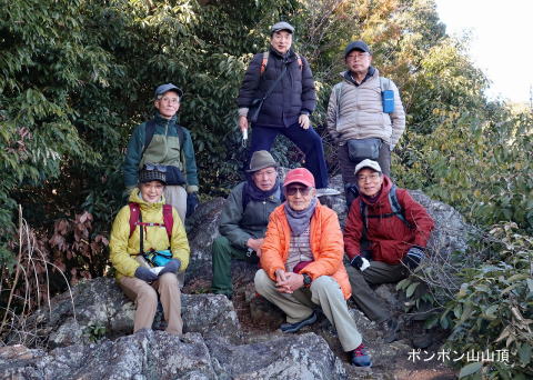 参加者7名は予定通りに集合し9:15発のバスに乗り込む。歩けば30分ほどの百穴入口までをバスだと5分程度で、今日の歩行を考えると納得がいく。時間の節約だ。バス停到着後のミーティングで久家リーダーから「当初の計画ではポンポン山からはバスで帰ってくる予定をバス停までの距離があるのでタクシー利用に切り替えたい」との話あり。メンバーからは早く帰ってきて新年会を兼ねた反省会をやりたいと盛り上がる。