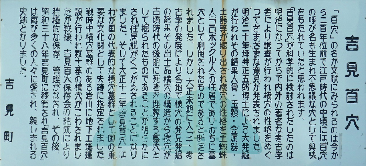 古墳時代とは弥生時代に続く考古学上の時期区分で前方後円墳に代表される古墳が盛んに造られた時代(西暦250年〜538年)をいい、吉見百穴はこの後期にあたるとあった。