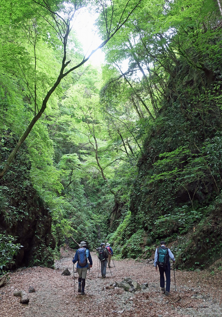 | 今熊山の三つ葉ツツジは例年より早く開花し既に散っていたが、萌える新緑の山行は行程に難所もなくのんびりと春を満喫した。 | |||