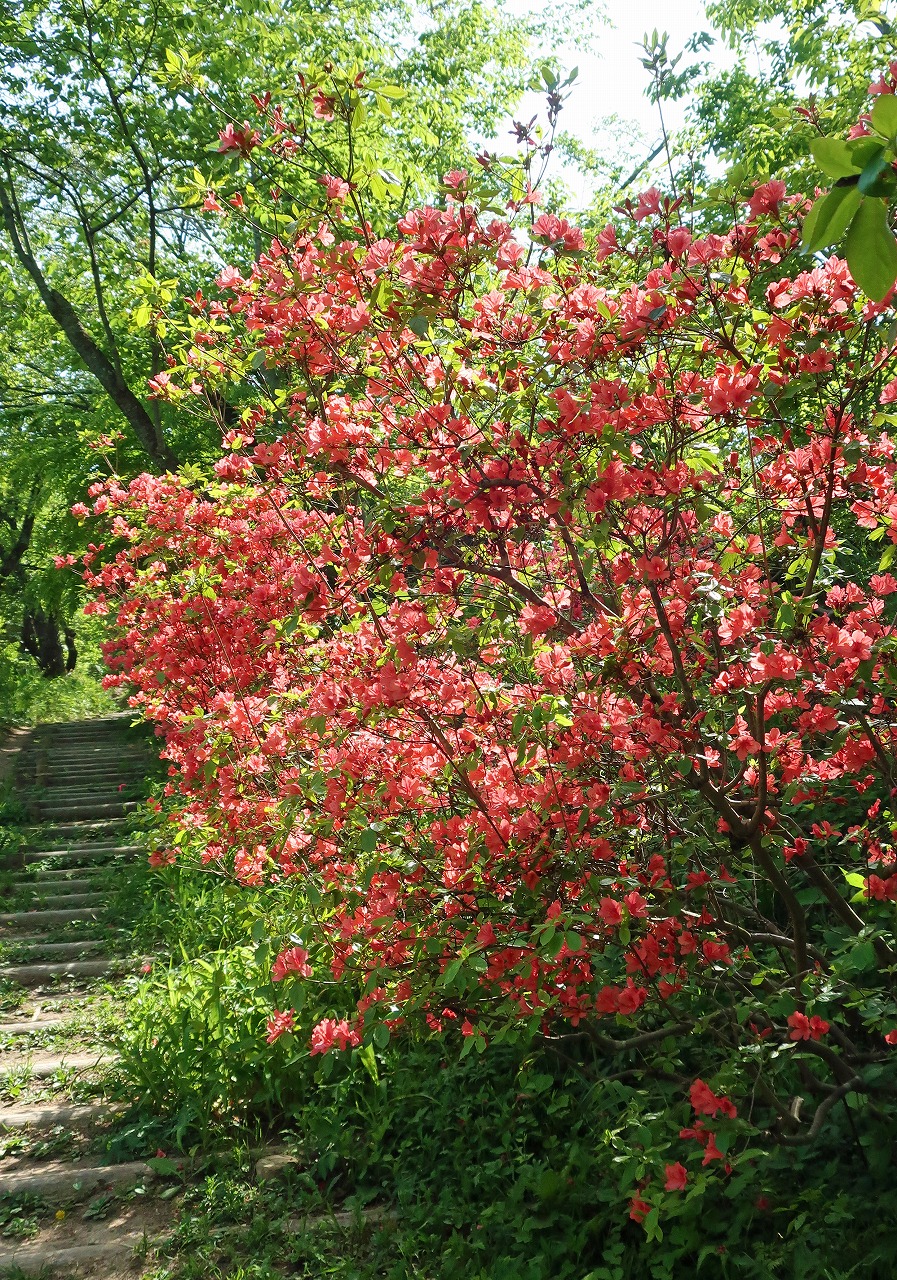 1315 渋い赤色 山つつじ、ほっとする。続いて平らな道を行きます。