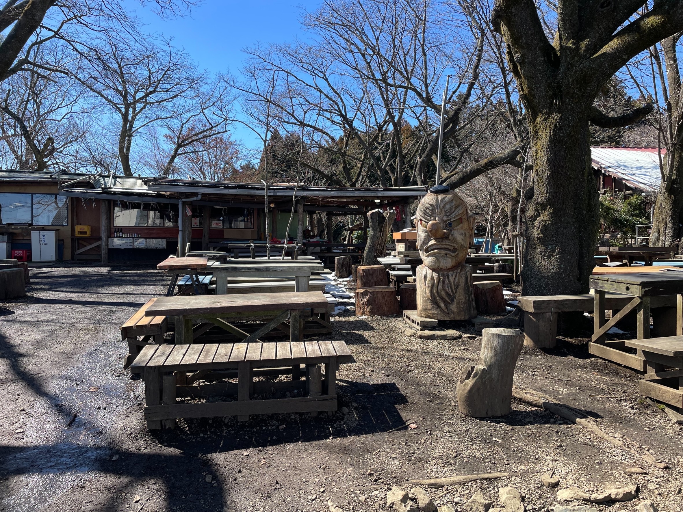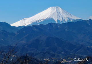 | 晴天なれど、東京地方は強風注意報が出されており、状況次第では引き返すことも考慮に入れてバスに乗る。思ったより風は強まらず、山頂では真っ白に輝く富士山を眺めることができた。 | |||