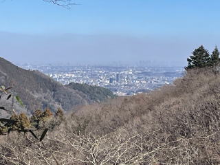 13:01小仏峠に到着 ベンチがある広場 八王子駅ビルを含む街がみえました。