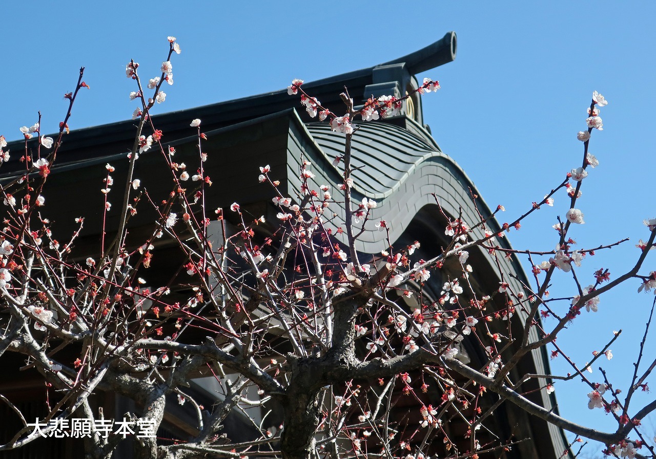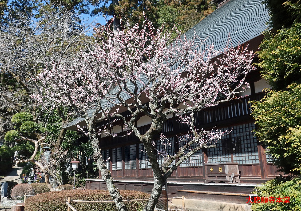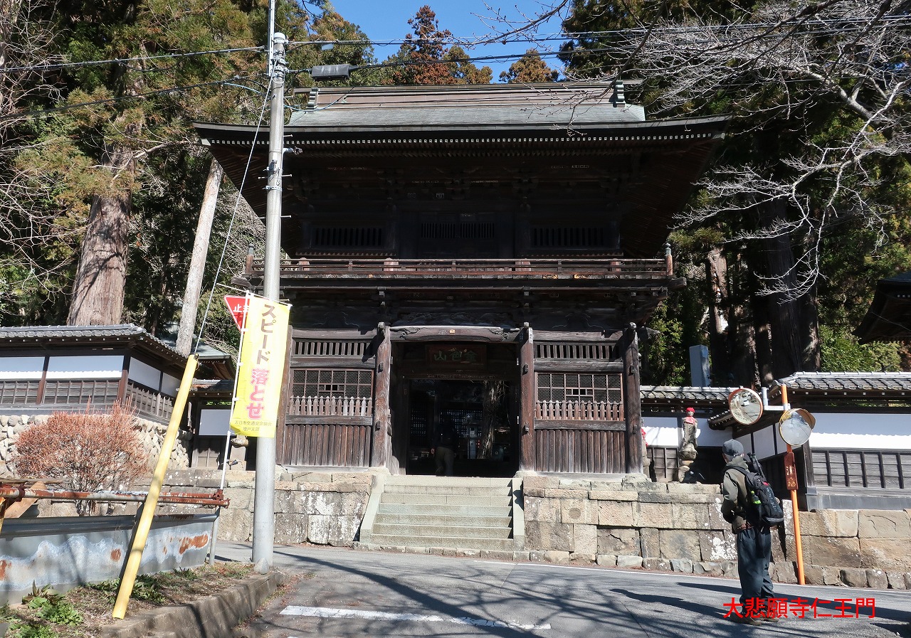駅から踏切を渡って線路沿いの車道を西に向かい20分ほどで大悲願寺に到着する。