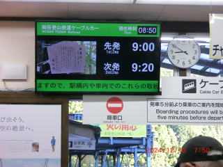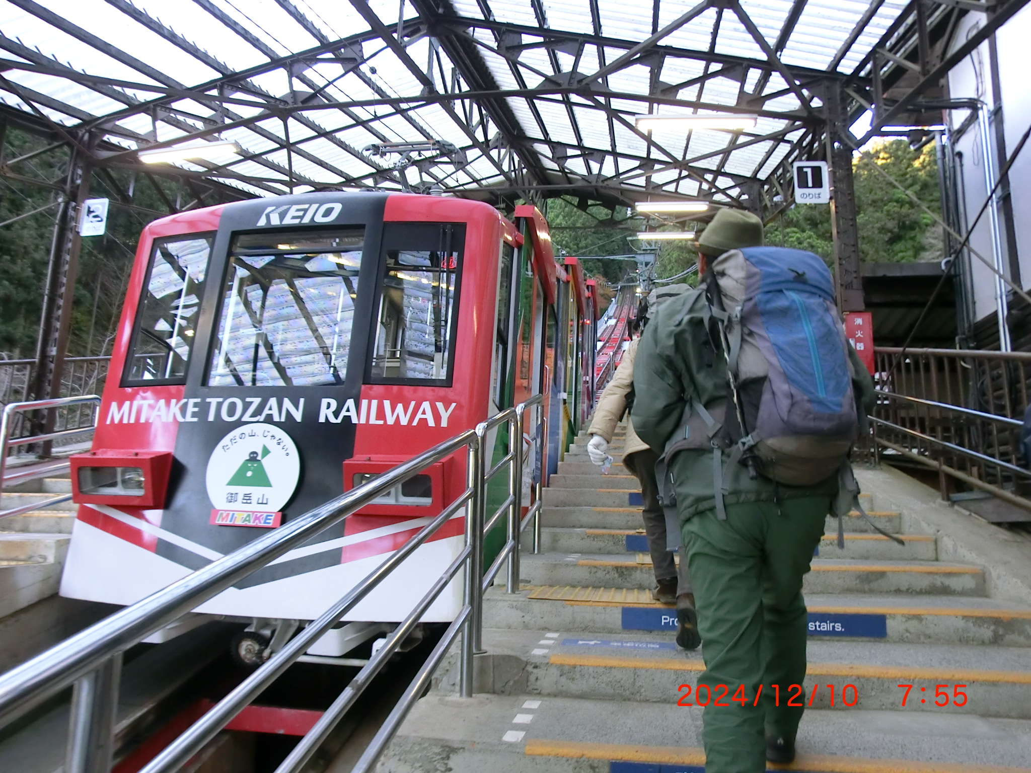 青梅駅で8:03発の奥多摩行き電車に乗り換える。車内で筆者(門馬)は木村さん、佐々木さんと出会う。ラインで山口さん、山下さんは後方の車両に乗っていることが判明、全員の参加が確認できた。9:00発のケーブルに乗り9:06に山頂駅に着く。