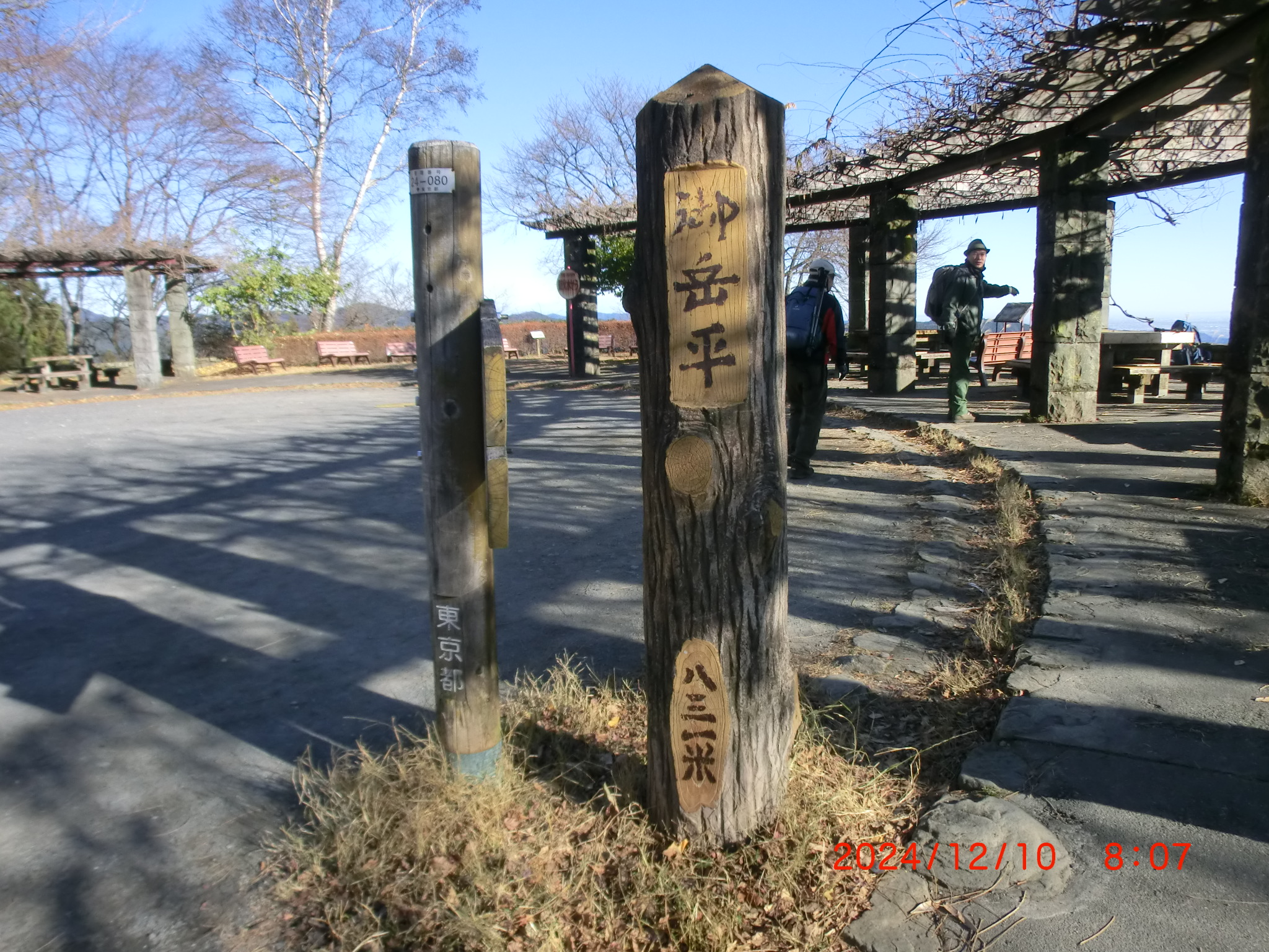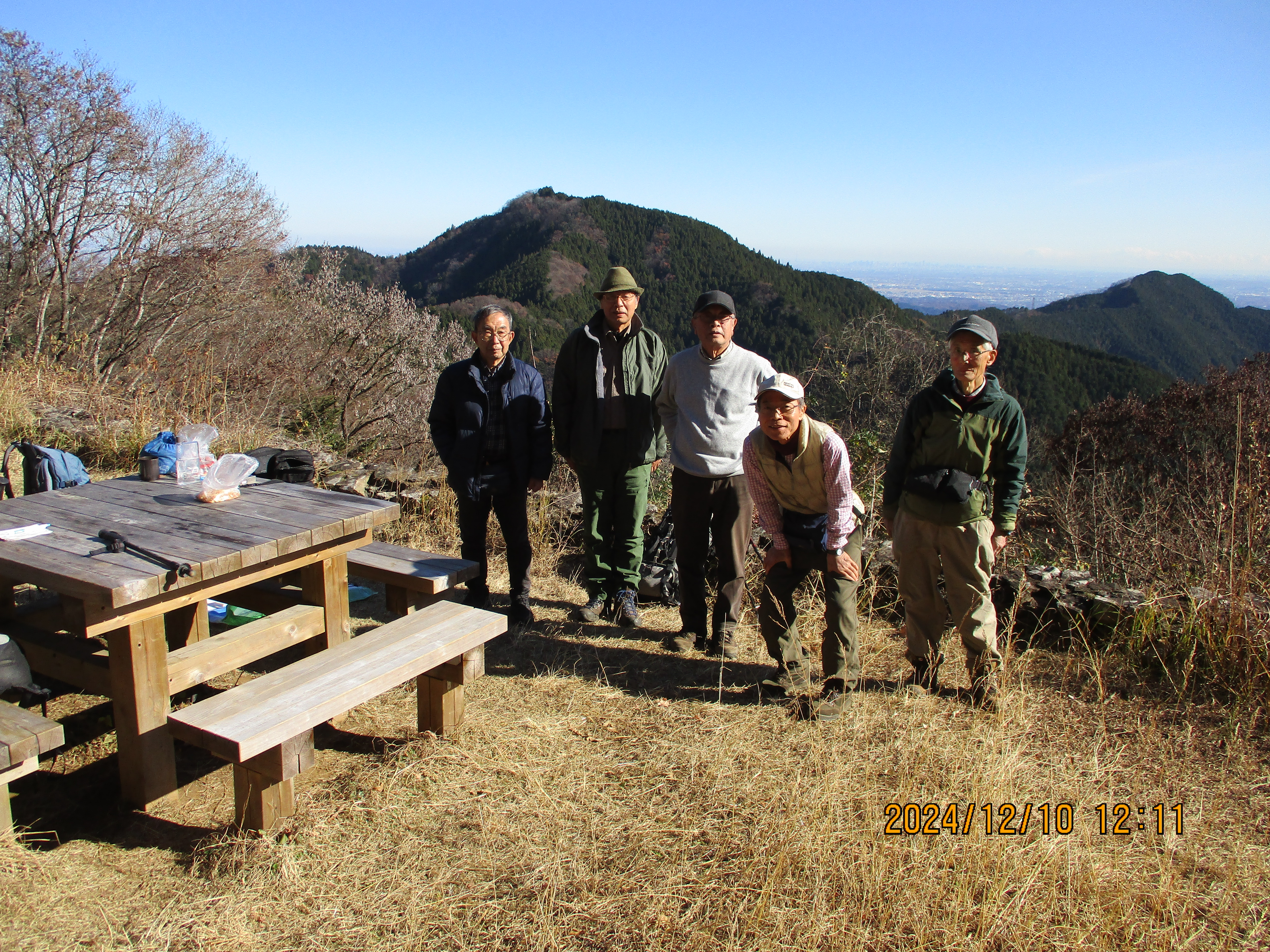 長尾平に9:58に到着。ここで山口リーダーから、今年一年の振り返りとしてクイズ形式で参加者数や各山行の降車駅名などの質問があった。今年一年の皆勤賞は木村さんと私(門馬)であった。1回休みが山口さん、2回休みが佐々木さんと鈴木さんで、10月の多峯主山山行から久し振りに山下さんが参加されるようになった。