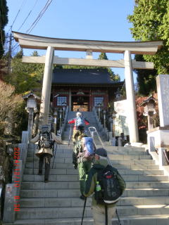 風が強く体感温度が低く感じられる。御岳講の旅館街を歩く途中の道路に人が倒れているのが見えて驚いたが、よく見ると下水の工事らしく寝そべってマンホールの中を覗いているのであった。御嶽神社は階段が工事中らしく使用できないのでお参りはやめる。