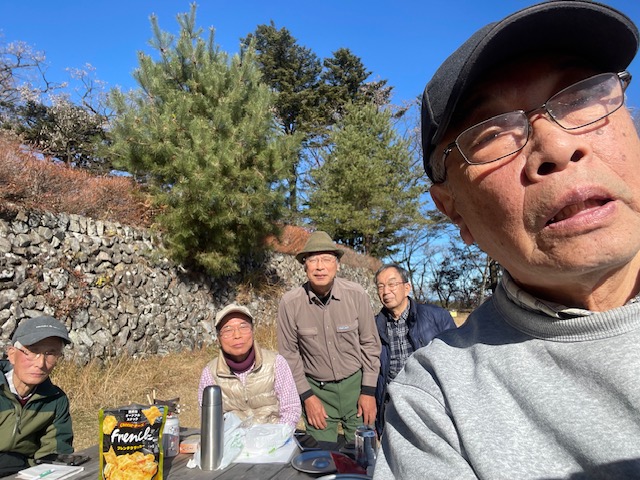 当日の朝鈴木さんから咳が出るので参加を見送るとのメール(200回山行についての皆さんの意見を教えてほしい、との文面あり)があり、本日の参加者は5名となる。今日は200回記念行事や今後の山久会の継続についても話し合う予定である。