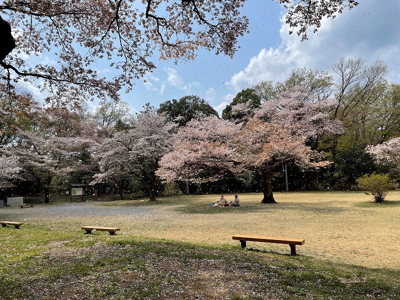 今回は西東京バスの滝山城址下バス停から天野坂を上り、曲輪巡り、山桜の鑑賞、ソメイヨシノの花吹雪浴び等を行いながら、約4時間過ごし、語らいの道