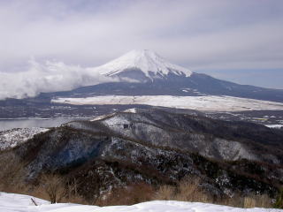 団体で山頂は一杯。予想より雪が深い。濃霧後小雨で、平尾山から平野に戻る。