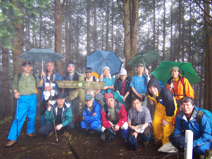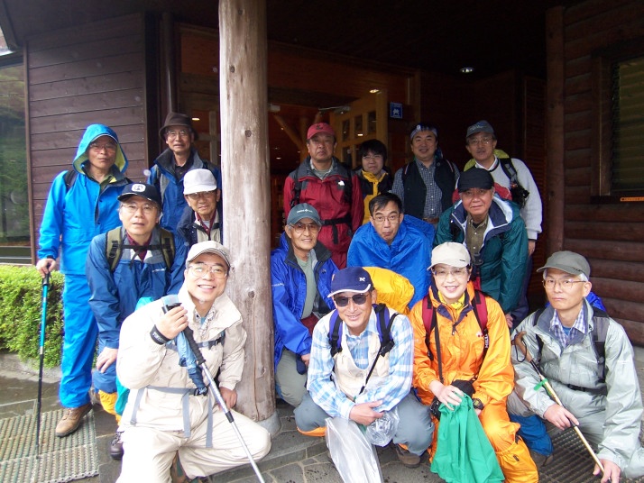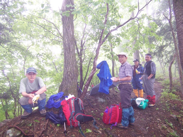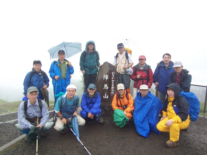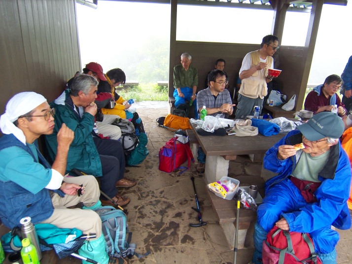 山口氏、山下氏の定年祝い山行。生憎の雨。陣谷温泉で入浴と宴会。