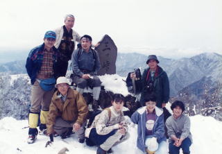 予想外の雪道。後から戸田さんが一人で登ってきた。三つ峠山荘前でトン汁。下りは泥道。